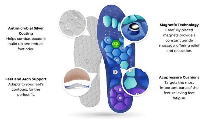 Akusoli Shoe Insoles work through a combination of ergonomic design, targeted cushioning, and arch support technology. Their structure helps guide the foot into a more natural position while walking or standing.